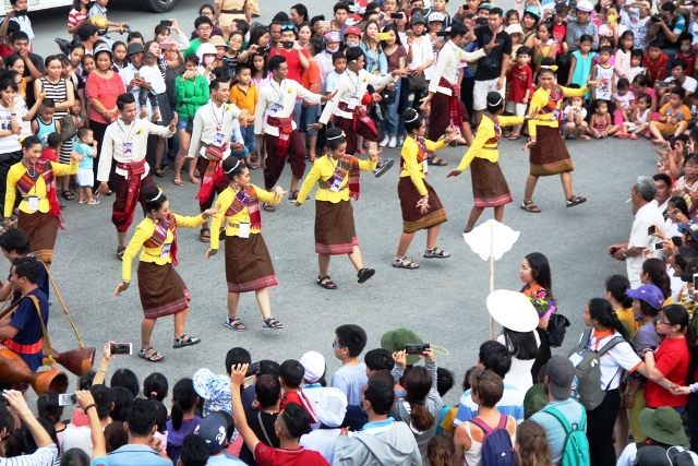 Đoàn nghệ thuật đến từ Thái Lan biểu diễn trên đường phố thu hút công chúng đến xem