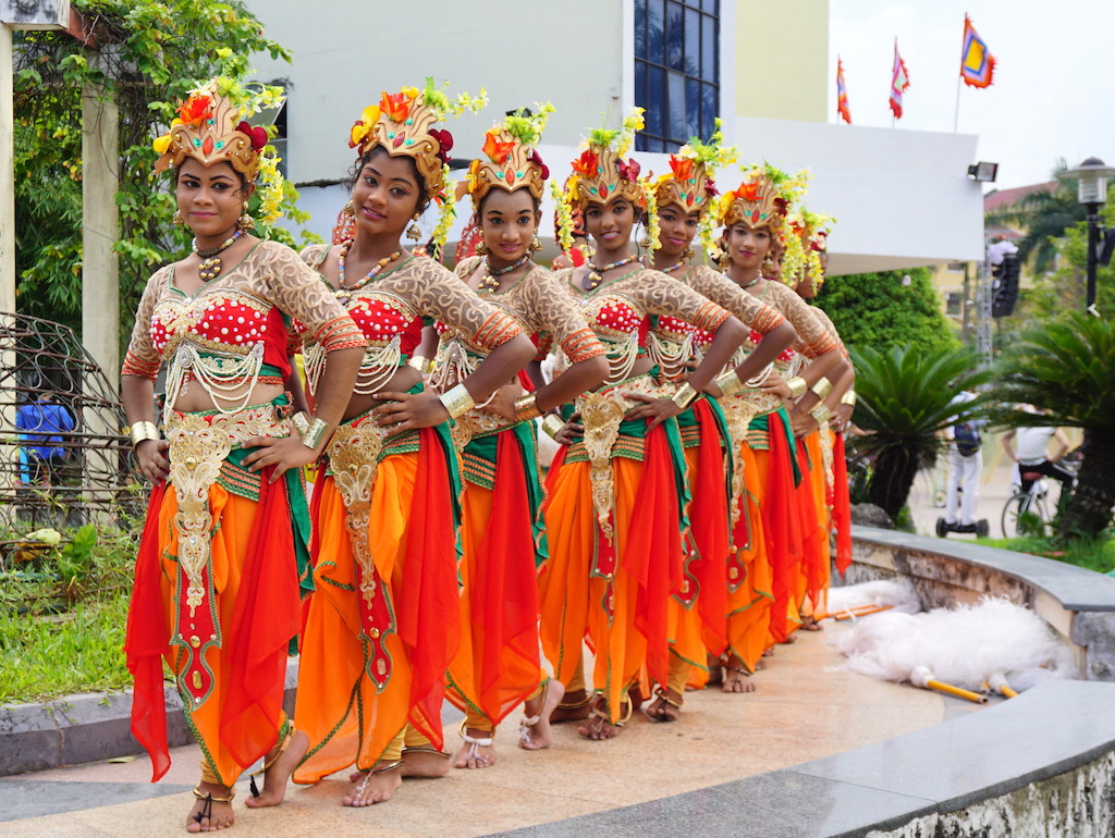 Các nghệ sĩ đến từ Học viện múa Ranranga, Sri Lanka rực rỡ trong trang phục truyền thống trước giờ biểu diễn