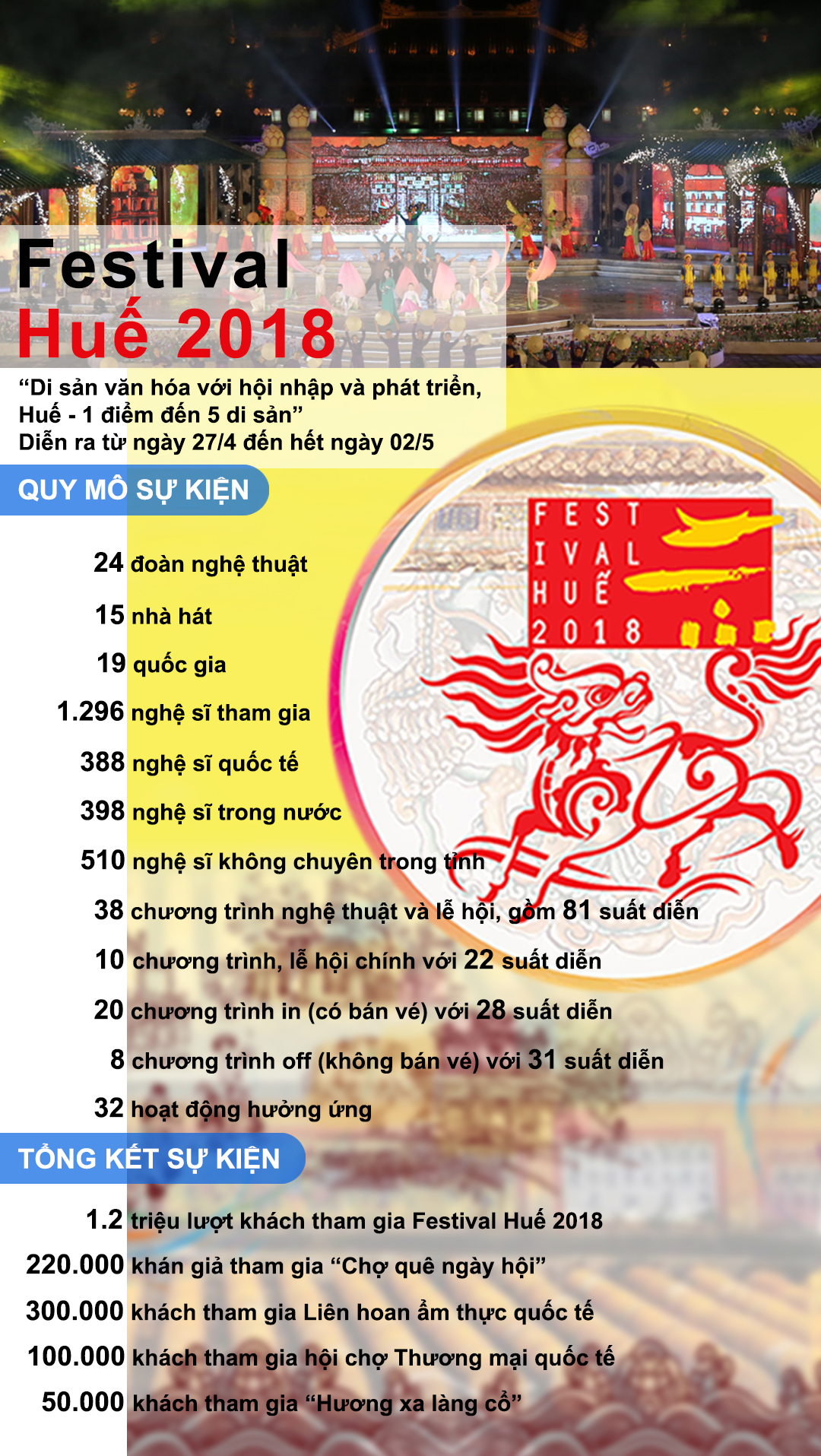 HNN.VN - Theo Ban tổ chức (BTC), Festival Huế 2018 được tổ chức đúng vào dịp kỷ niệm 25 năm quần thể Di tích Cố đô Huế được UNESCO công nhận là Di sản Văn hóa Thế giới (1993-2018); 15 năm Nhã nhạc Cung đình Huế được UNESCO công nhận là Kiệt tác di sản văn hóa Phi vật thể và Truyền khẩu của nhân loại (2003-2018). Theo đó, Festival Huế 2018 quy tụ những chương trình nghệ thuật đặc sắc, tiếp tục mang dấu ấn của những vùng văn hoá tiêu biểu của Việt Nam và thế giới như các kỳ trước.