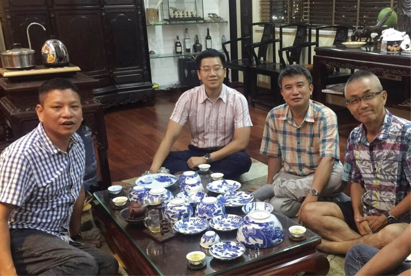 Nhà sưu tập Nguyễn Công Tuấn (ngoài cùngbên trái), Cao Cường (thứ hai từ trái sang)