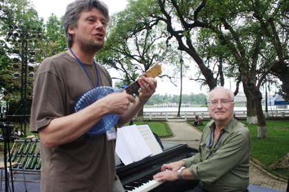 Không dừng lại ở đó, nghệ sĩ Max Vandervorst đã kết hợp với tiếng đàn piano của Marc R.J Couis để tạo nên những bản hòa tấu âm thanh mới lạ, hấp dẫn người nghe. Những nốt nhạc của Max đã điều chỉnh tương xứng với âm thanh lúc trầm, lúc bổng của tiếng đàn piano. Tại Festival Huế 2012, công chúng đã được thưởng thức 17 bản nhạc nước ngoài và kết thúc bằng bài Trống cơm. Chứng kiến từ đầu đến cuối màn trình diễn của nghệ sĩ Max Vandervorst, chị Lý Thị Thủy, du khách Nghệ An bộc bạch:Tôi quá sức ngạc nhiên khi chỉ bằng những vật dụng tưởng chừng không có giá trị lại được nghệ sĩ phù phép để tạo nên những bản nhạc độc đáo, không lẫn vào đâu được.