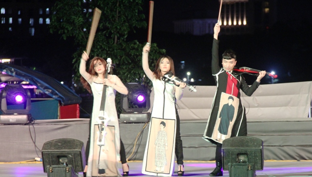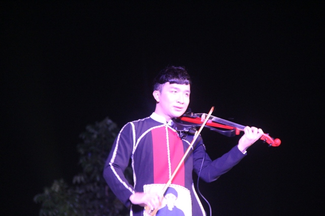 Nghệ sĩ Violin Hoàng Rob say đắm trong những giai điệu dân ca trong đêm giữa tại công viện Trịnh Công Sơn.