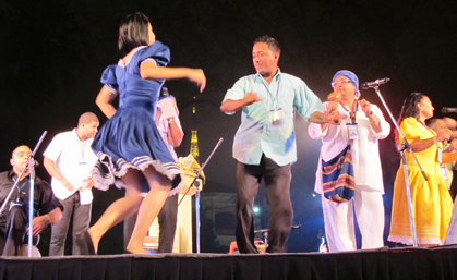Tiếng trống rộn ràng, lời bài hát quá sôi động, diễn viên diễn quá “sung” đã khiến nhiều khán giả cùng nhập cuộc. Ngài Đại sứ Venezuela cùng phu nhân cũng có mặt. Thật ngạc nhiên, trong tiếng trống sôi động ấy, trong không khí rộn ràng ấy, ngài Đại sứ cũng không thể ngồi yên. Ông kéo tay khán giả cùng nhảy múa. Những lời reo hò, những tràng vỗ tay vang lên tán thưởng khiến cho cả sân khấu lẫn khu vực của khán giả đều náo nhiệt. Kết thúc chương trình, ngài Đại sứ Jorge Rondon Uzcategui của Venezuela còn đứng trên sân khấu nói lời cám ơn và hô vang “Việt Nam-Venezuela” và “Hồ Chí Minh muôn năm”.