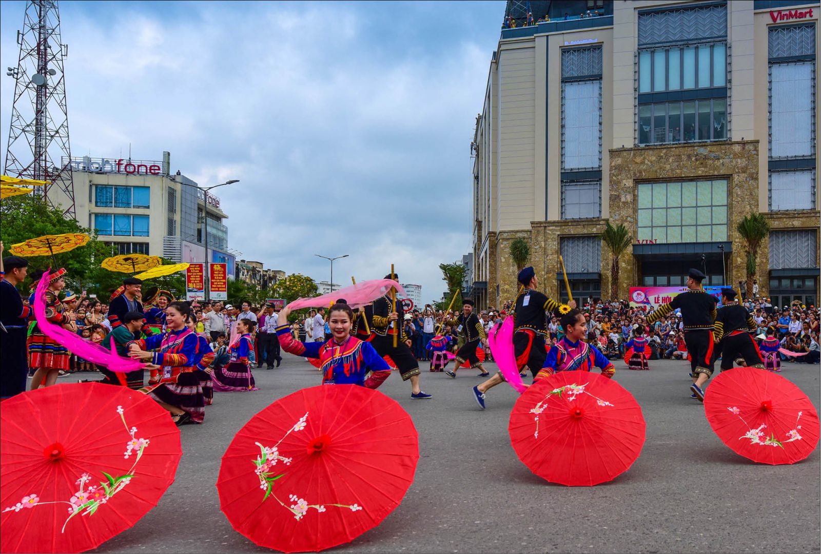 Đoàn ca múa nhạc Việt Bắc tham gia lễ hội đường phố. Ảnh: Lê Huy Hoàng Hải