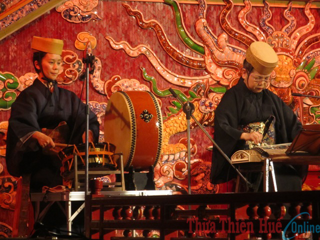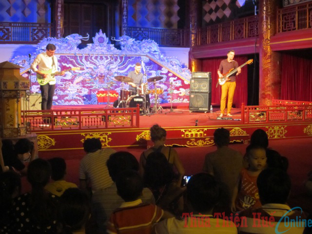 HNN.VN - Tối 30/4, không gian của Nhà hát Duyệt Thị Đường - Đại Nội, diễn ra chương trình biểu diễn nghệ thuật của đoàn nghệ thuật Okinawa - Takamine Hisae (Nhật Bản) và nhóm tam tấu jazz Michal Milczarek (Ba Lan).