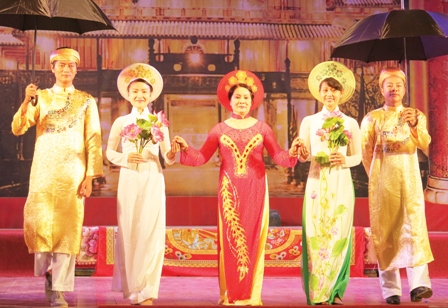 Rước nghệ nhân tại sân khấu tôn vinh ca Huế