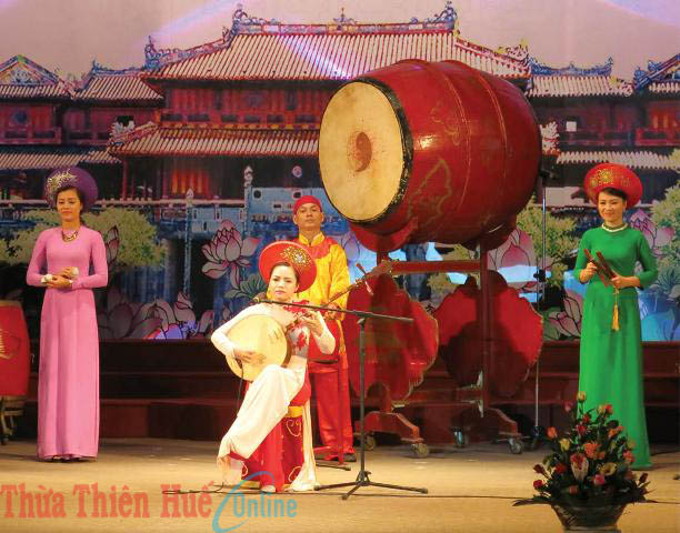 Nghệ sĩ Nhà hát Nghệ thuật Ca kịch Huế biểu diễn trong lễ khai mạc Liên hoan sân khấu hài kịch không chuyên toàn quốc – một hoạt động trong khuôn khổ Festival Huế 2016