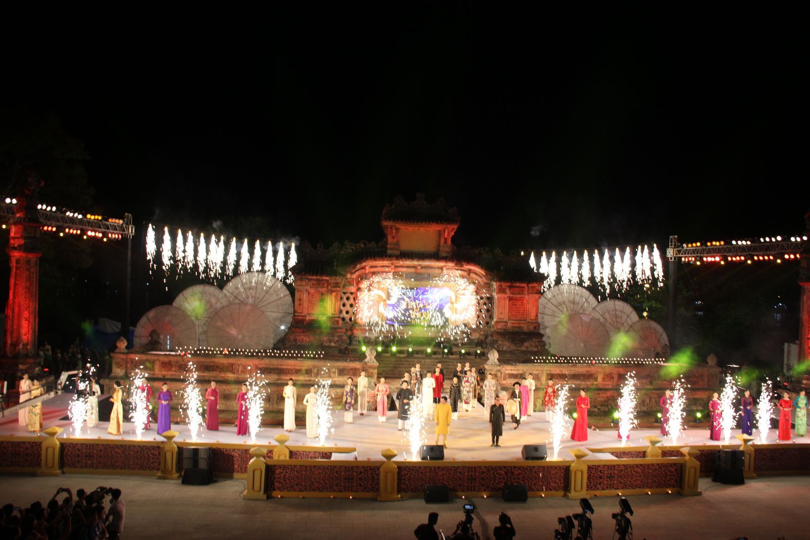 Sân khấu áo dài rực rỡ trong màn pháo hoa