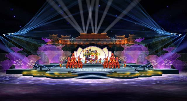 Phối cảnh sân khấu đêm bế mạc Festival Huế 2016. Ảnh: BTC Cung cấp