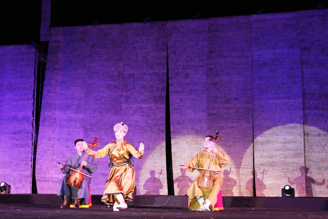 Mở đầu chương trình biểu diễn tại sân khấu Điện Cần Chánh tối 30/4 là những tiết mục nghệ thuật đặc sắc đến từ vùng thảo nguyên Trung Á Mông Cổ. Đến với festival lần này, các nghệ sĩ nhà hát Cung văn hóa Trung ương Mông Cổ biểu diễn những tiết mục độc đáo như hát dân ca Mông Cổ, độc tấu với các nhạc cụ truyền thống và sôi động với những màn xiếc dẻo, múa chén.