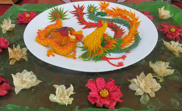 Không kém cạnh, nghệ nhân Tôn Nữ Hà đại diện ẩm thực Huế dự thi món bánh cung đình “Vũ khúc Long Phụng trên hồ Tịnh”. Với món bánh này, nghệ nhân Tôn Nữ Hà đã khôi phục 3 loại bánh trái cung đình có nguy cơ thất truyền: bánh cổ độ, mứt màu hoa và bánh sâm hoài. Món bánh này được trang trí công phu, cầu kỳ trông rất quý phái.