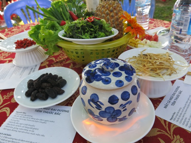 Suốt mấy ngày diễn ra liên hoan, mắt cá ngừ đại dương ở gian hàng của Khách sạn Kaya – Phú Yên luôn nườm nượp khách. Ban đầu là vì tò mò nếm thử món ăn được bình chọn là một trong 10 món ăn đặc sắc ngon nhất Việt Nam. Nếm thử rồi thích mê, giá cả lại phải chăng chỉ 30 nghìn đồng nên khách đua nhau đến mua mắt cá ngừ tiềm thuốc Bắc và chiên giòn. Ngọt từ đầu lưỡi, không tanh, giữ nguyên hương vị dù nấu cùng táo thuốc Bắc nên món ăn hấp dẫn thực khách.