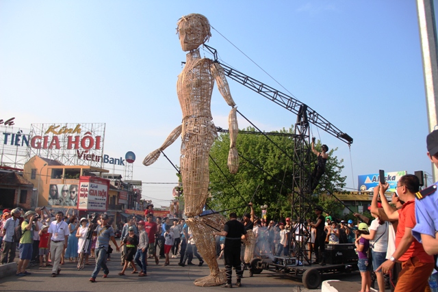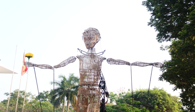 Một số hình ảnh chú rối khổng lồ trền đường phố chiều 30/4: