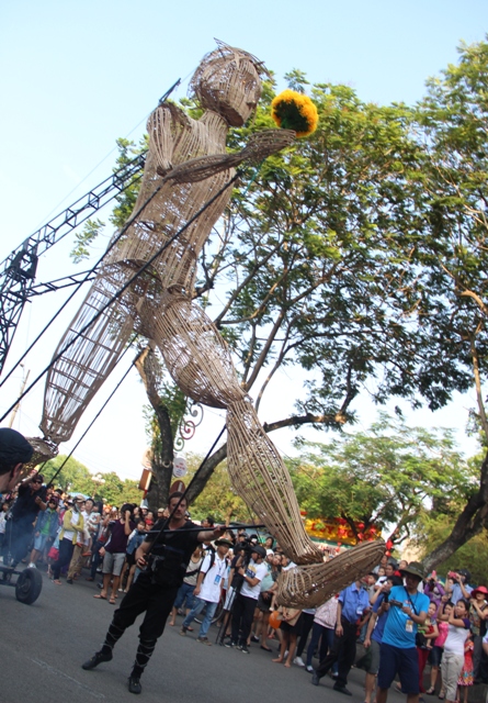 Liédo cao 7,5m, có khớp, được chế tác hoàn toàn bằng mây. "Bạn ấy" đến từ nước Pháp rất xa. Nhưng trong hành trình đầu tiên trên đất Huế của mình, từ công viên Trịnh Công Sơn qua đường Trần Hưng Đạo đến sân Hàm Nghi, cả Liédo và các nghệ sĩ đang dồn hết sức để điều khiển trở nên gần gũi và thân thiện vô cùng.