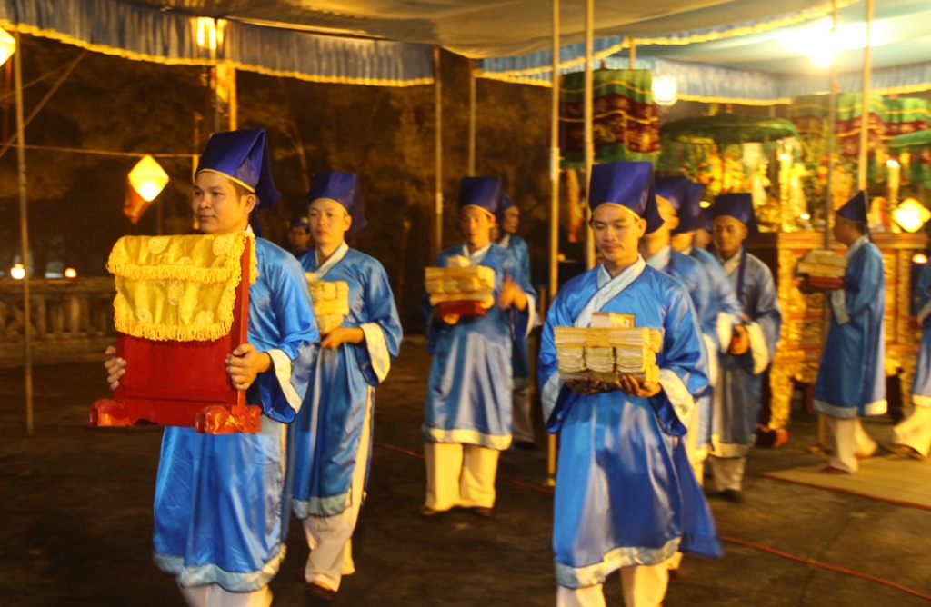 Đoàn rước sớ cùng với vật phẩm lễ tế tiến hành các bước lễ nghi