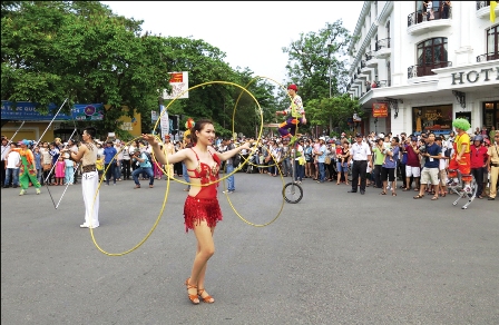 Nghệ thuật biểu diễn đường phố luôn thu hút công chúng và du khách