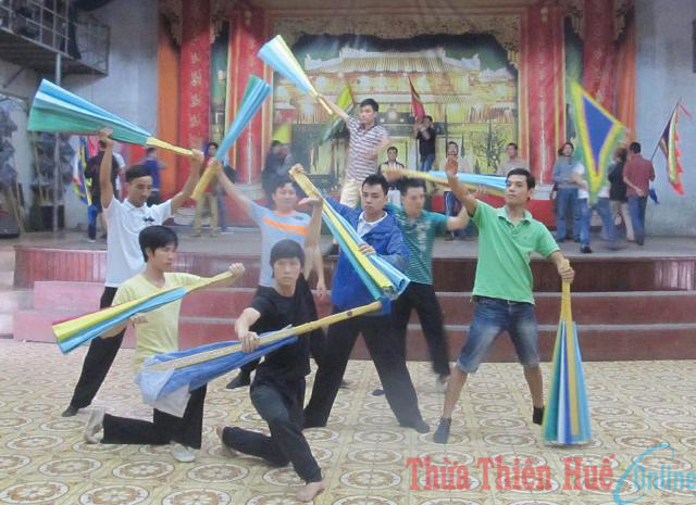 Nghệ sĩ Nhà hát Nghệ thuật Ca kịch Huế luyện tập cho ngày khai mạc