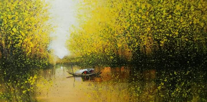 Tác phẩm "Bến thuyền" của họa sĩ Nguyễn Duy Hiền. Ảnh chụp lại từ tác phẩm