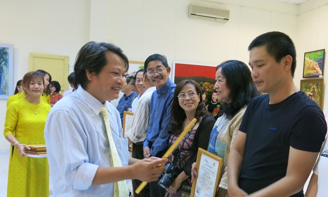 Tạp chí Sông Hương trao giấy chứng nhận cho các họa sĩ tham gia triển lãm