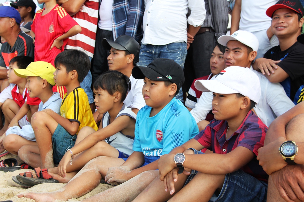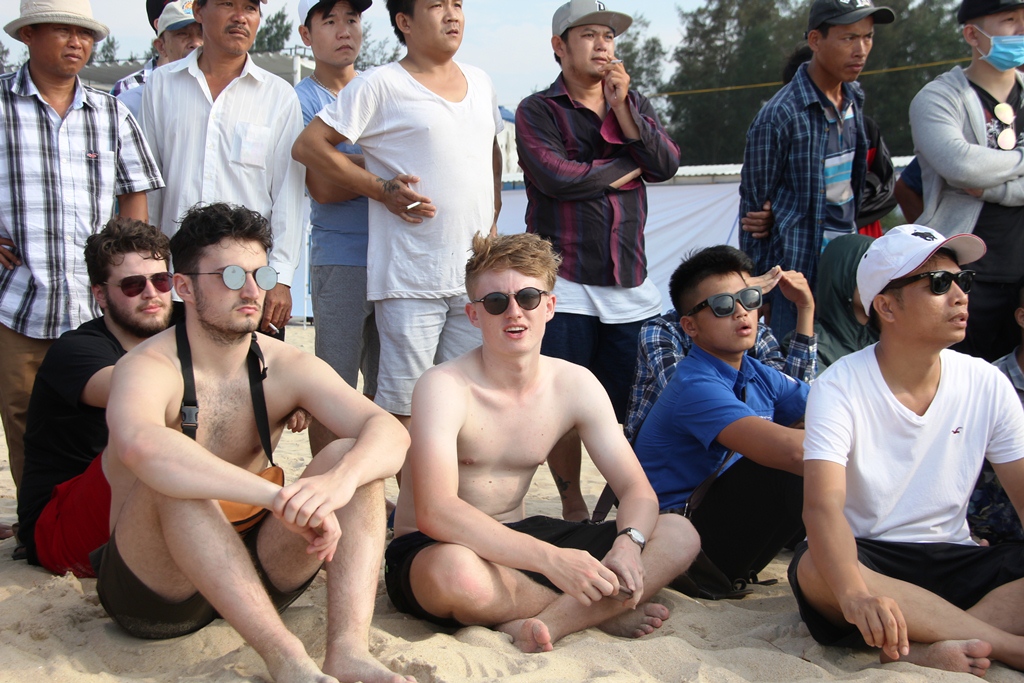 Khách tây hào hứng đón xem từng đường bóng của các cầu thủ trên bãi biển Thuận An.