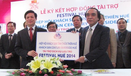 Chiều 2/1, Hiệp hội Khách sạn, Công ty TNHH Nhà nước MTV Đầu tư & Du lịch Huế và Ban Tổ chức Festival Huế 2014 tiến hành ký kết hợp đồng tài trợ cho Festival Huế 2014. Ông Ngô Hòa, UVTV, Phó Chủ tịch Thường trực UBND tỉnh, Trưởng Ban Tổ chức Festival Huế 2014; lãnh đạo Trung tâm Festival Huế và ông Đinh Mạnh Thắng – Chủ tịch Hiệp hội Khách sạn đã đến dự lễ ký kết.
