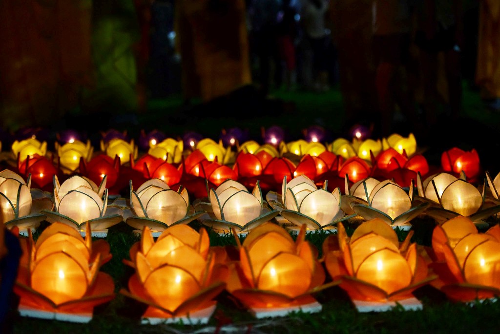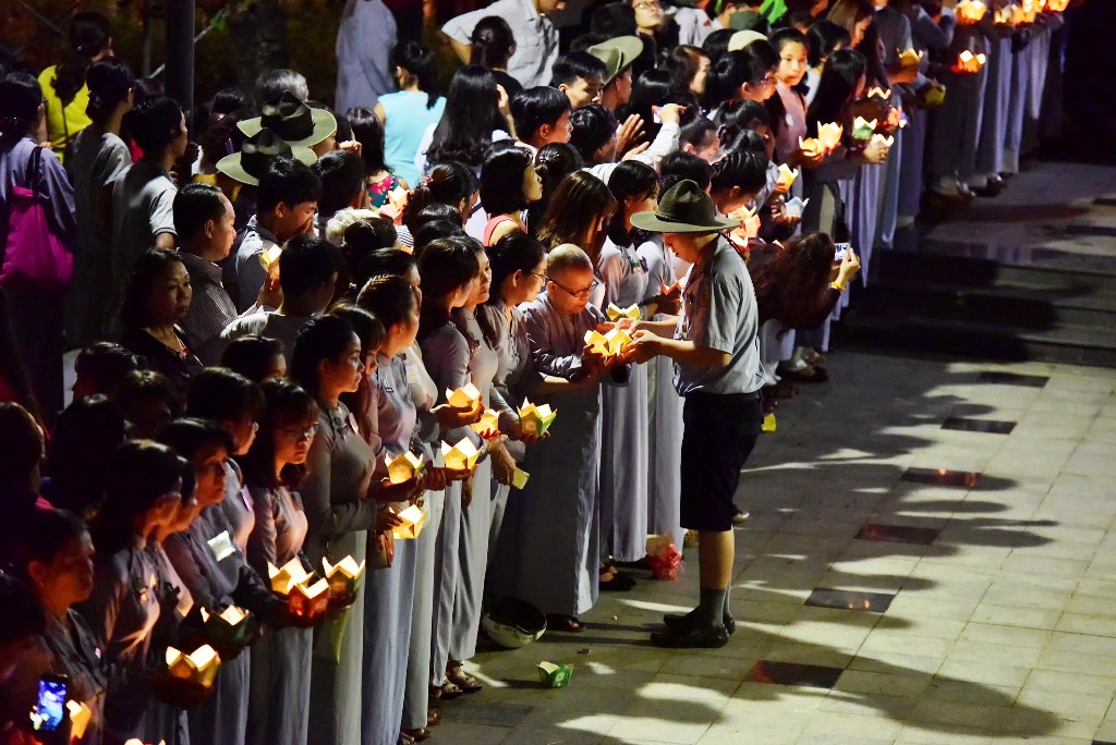 Phật tử thả hoa đăng trước và trong buổi lễ