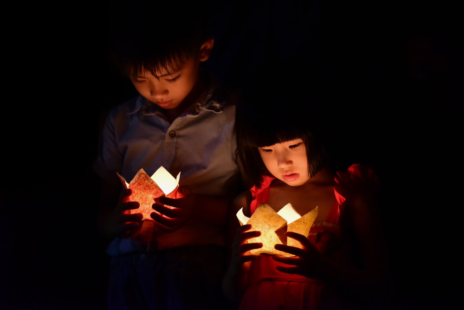 Theo cha mẹ tham gia chương trình, mỗi bé được thả một ngọn hoa đăng