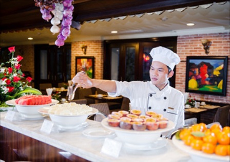 Mấy ngày nay, ngoài đón và phục vụ khách lưu trú khắp nơi đổ về Huế dự festival, các khách sạn còn tất bật tập dượt chuẩn bị gian hàng để tham gia Liên hoan ẩm thực quốc tế lần đầu tiên được tổ chức tại Huế. Dẫu những món ăn tham dự liên hoan đã được các đầu bếp Khách sạn Mondial chế biến “mòn tay” nhưng khách sạn vẫn triển khai công tác chuẩn bị chu đáo. Những món ăn thường nhật của người Huế, như: bún thịt nướng, nem lụi sả, heo xiên nướng, cánh gà chiên bột trứng... sẽ được Mondial giới thiệu đến du khách gần xa. Ông Nguyễn Hữu Bình, Giám đốc Khách sạn Mondial cho biết: “Cách chế biến những món ăn này tương đối đơn giản nhưng chúng tôi vẫn chuẩn bị chu đáo từ nguyên liệu, dụng cụ chế biến cũng như tập dượt cách bưng bê, phục vụ, để giới thiệu đến du khách gần xa những món ăn dân dã đúng hương vị Huế”.