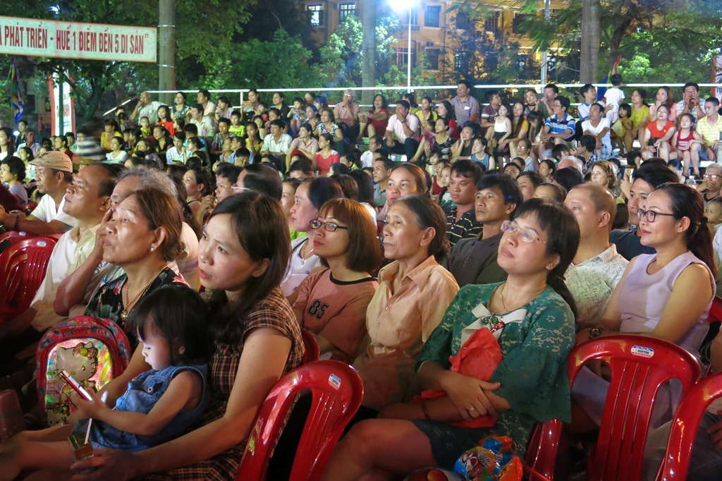 Đông đảo khán giả đến sân khấu Trung tâm Văn hóa Thông tin tỉnh thưởng thức tình khúc Huế
