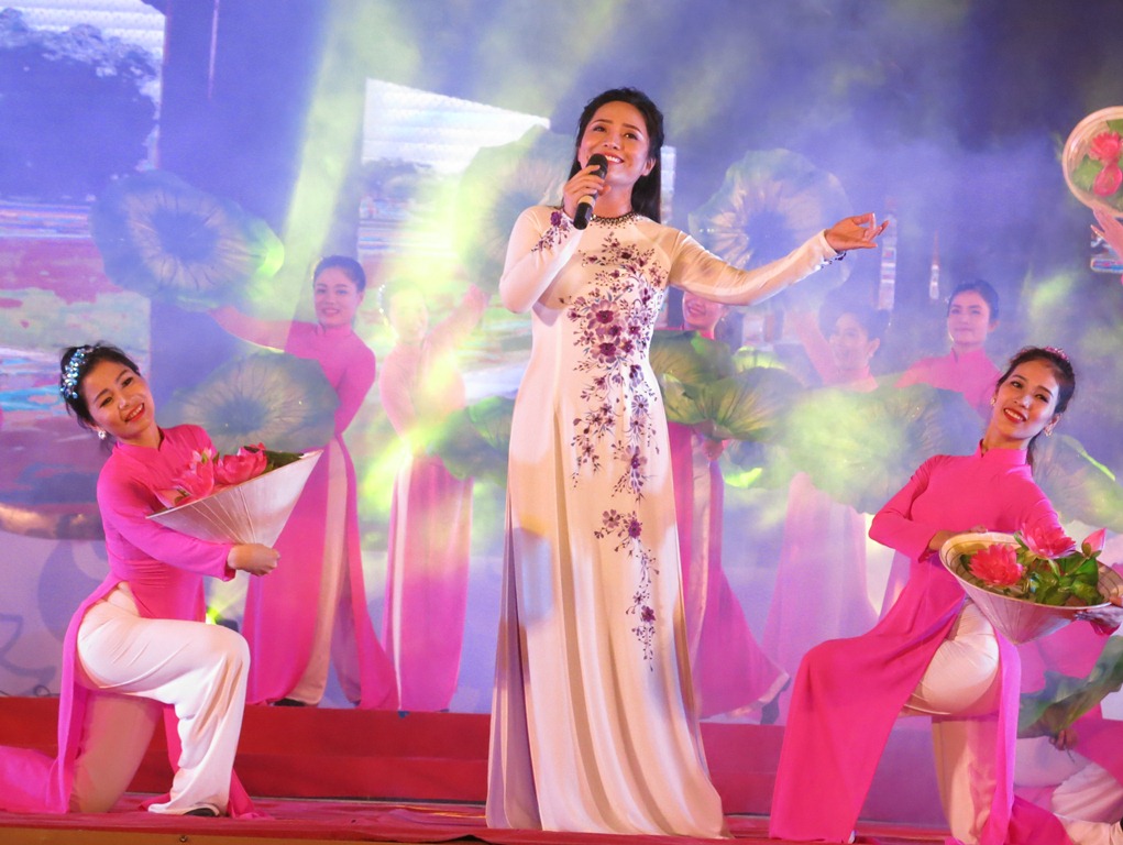 Các vị lãnh đạo tỉnh tặng hoa cho các nghệ sĩ, ca sĩ