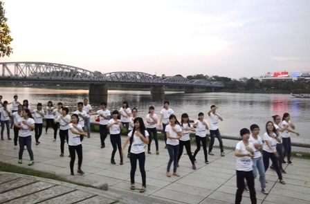 Đây là hoạt động mang ý nghĩa mở đầu cho Festival Huế 2014 do Nhóm phát triển kĩ năng CANI (Constant and Neverending Improvement) phát động. Trên nền bài hát “Về với Huế”, hàng ngàn bạn trẻ say mê tập luyện tạo nên một bầu không khí sôi động thu hút rất đông du khách và người dân đến xem. Không ít du khách và người dân Huê tỏ ra thích thú và hoà mình vào màn nhảy sôi động.