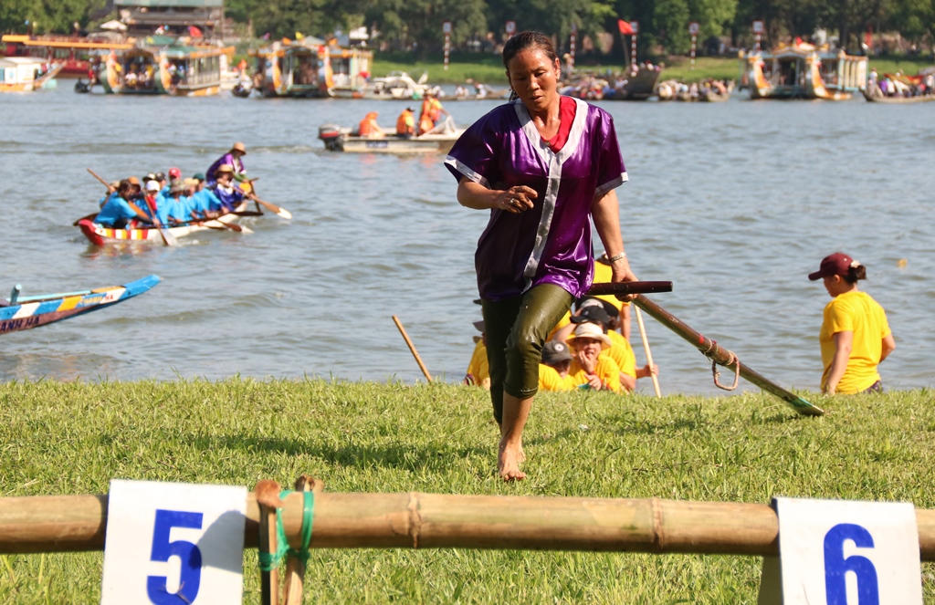 Vác chèo chạy nhanh xuống ghe sau hiệu lệnh trống
