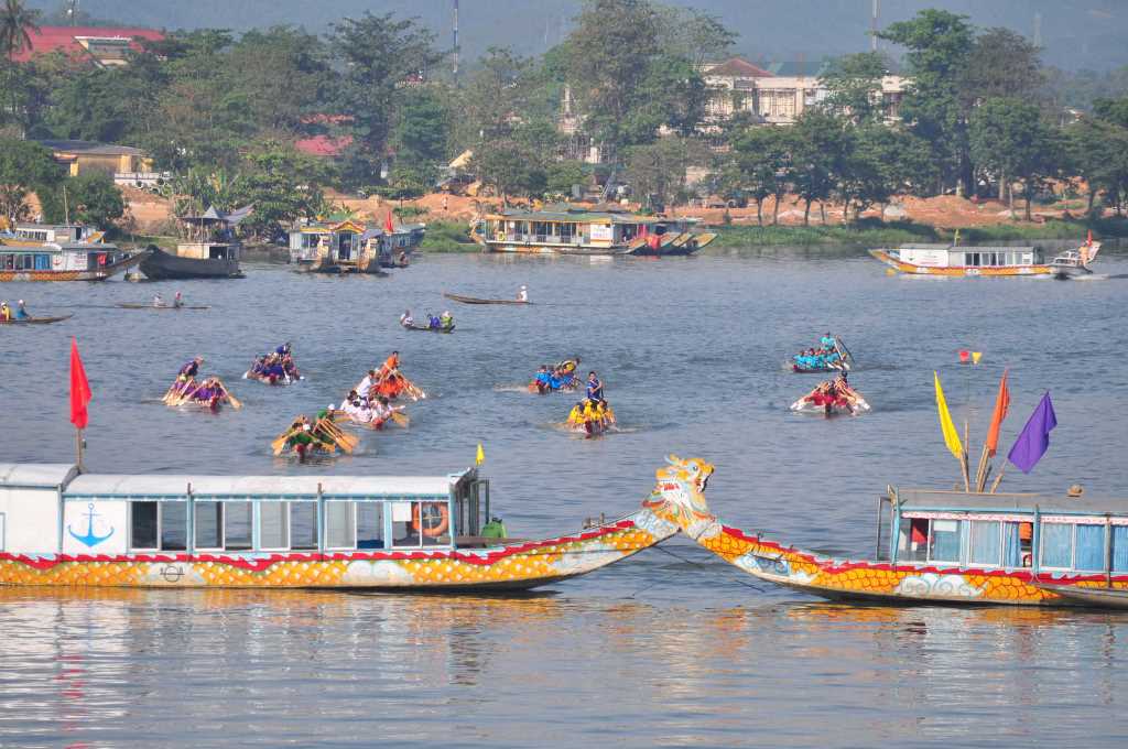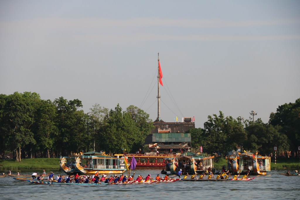 Giải đua khiến "bức tranh" sông Hương thêm sắc màu. Ảnh: Đăng Tuyên