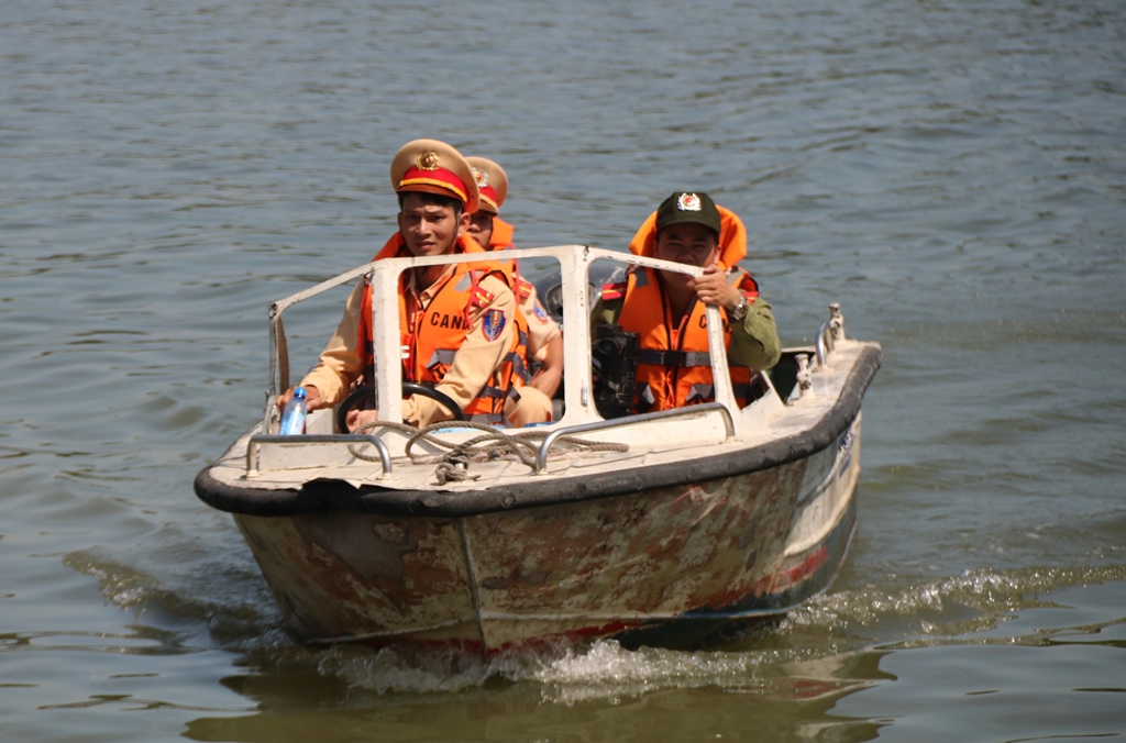 Lực lượng công an cũng liên tục theo các ghe để đảm bảo an toàn cho giải đua