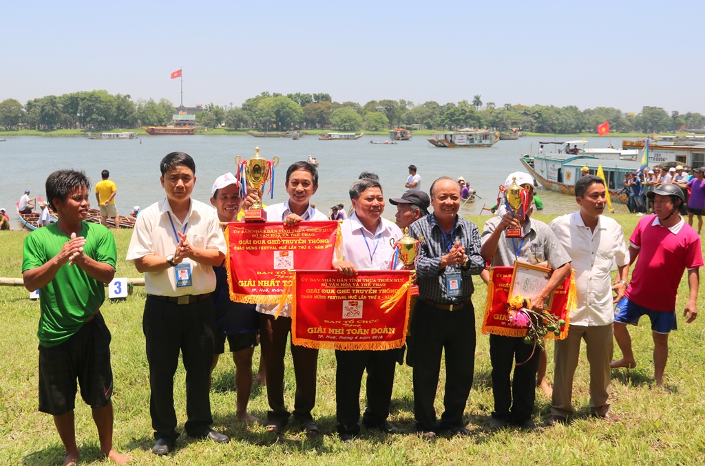 Kết thúc giải đua ghe, ban tổ chức trao giải Nhất toàn đoàn cho đơn vị ghe Phú Lộc; hai đơn vị ghe Thủy Vân (Hương Thủy) và Vân Thê (Hương Thủy) lần lượt giành giải Nhì và Ba toàn đoàn.