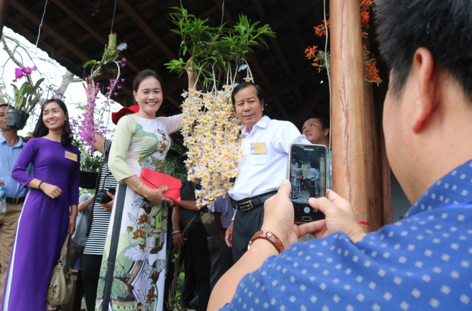 Khách tạo dáng bên những giò phong lan rực rỡ