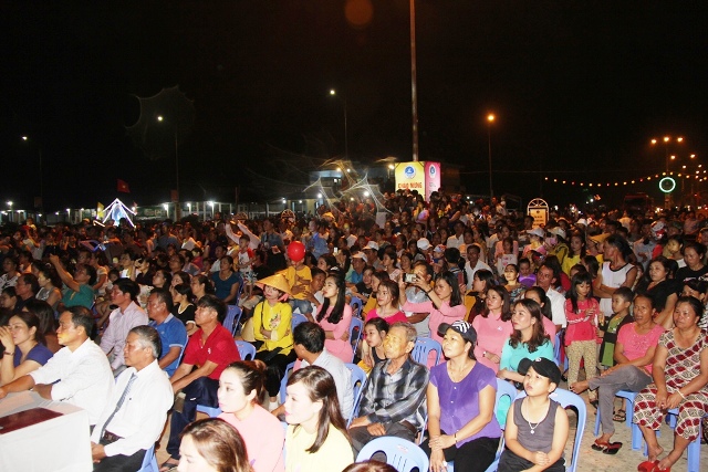 Tiếng nhạc cất lên. Tốp ca nam nữ Phòng GD&ĐT huyện Phú Vang thể hiện ca khúc “Phú Vang một khúc ca”, ca ngợi mảnh đất Phú Vang anh hùng, con người Phú Vang kiên cường vượt sóng gió, xây dựng quê hương bằng tình yêu thương rưng rưng niềm nhớ, mở đầu chương trình biểu diễn.Tiếng hát xúc động hào hùng hòa trong tiếng sóng “kéo” mọi người đến trước sân khấu.Tiếp đến lễ hội cầu ngư được tái hiện sinh động với chiếc thuyền cắm lá cờ Tổ quốc, ngư lưới cụ và những ngư dân chịu thương, chịu khó. Bất chợt mưa. Thế nhưng, dòng người vẫn đổ về sân khấu.