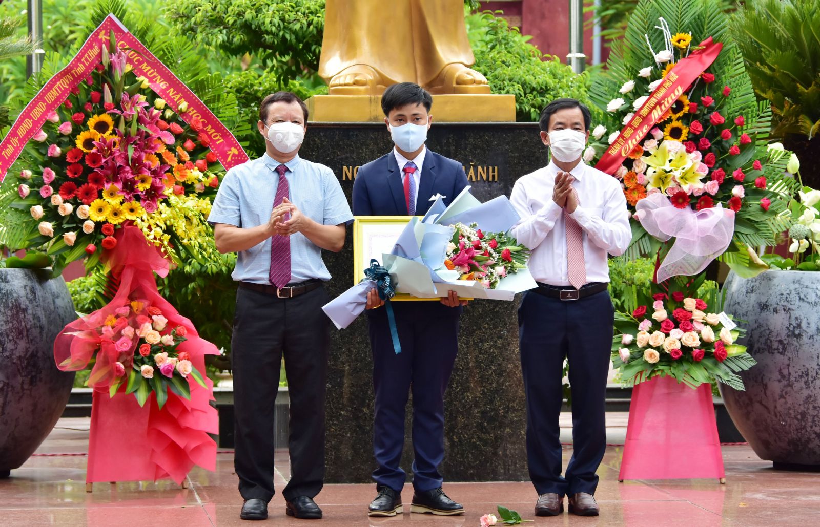 Tại buổi lễ khai giảng, lãnh đạo tỉnh đã biểu dương và tặng thưởng em Hồ Ngọc Vĩnh Phát, Huy chương Bạc quốc tế môn tin học.
