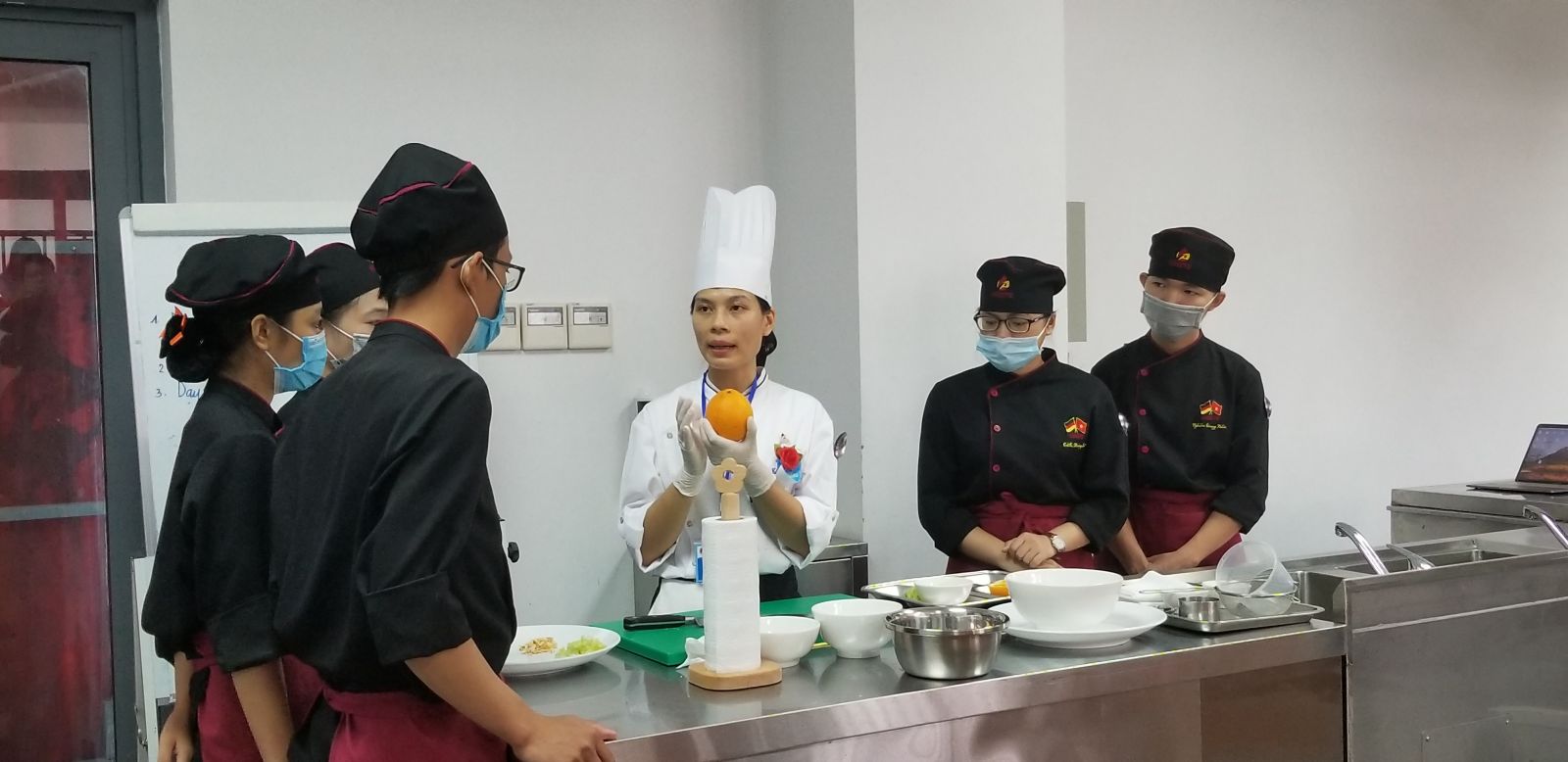 Giáo viên Phạm Thị Nguyệt Ánh, Trường cao đẳng Du lịch Huế trình bày bài giảng "Chuẩn bị, chế biến và hoàn thiện món xa lát Waldorf" tại hội giảng