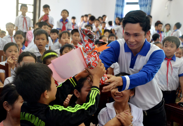 Vừa học tập vừa được nhận quà nên chương trình đã tạo được không khí vui vẻ cho các em.JPG)