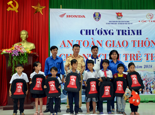 Tại chương trình, 161 chiếc mũ bảo hiểm đạt chất lượng với tổng kinh phí hơn 20 triệu đồng do Chi đoàn Báo Thừa Thiên Huế đóng góp với sự tài trợ của Công ty Tôn Bảo Khánh đã trao cho 161 học sinh Trường tiểu học Phong Xuân; Honda Lộc Thịnh cũng tặng 10 suất quà cho 10 học sinh có hàn cảnh khó khăn và nhiều phần quà khác trong hoạt động giao lưu.