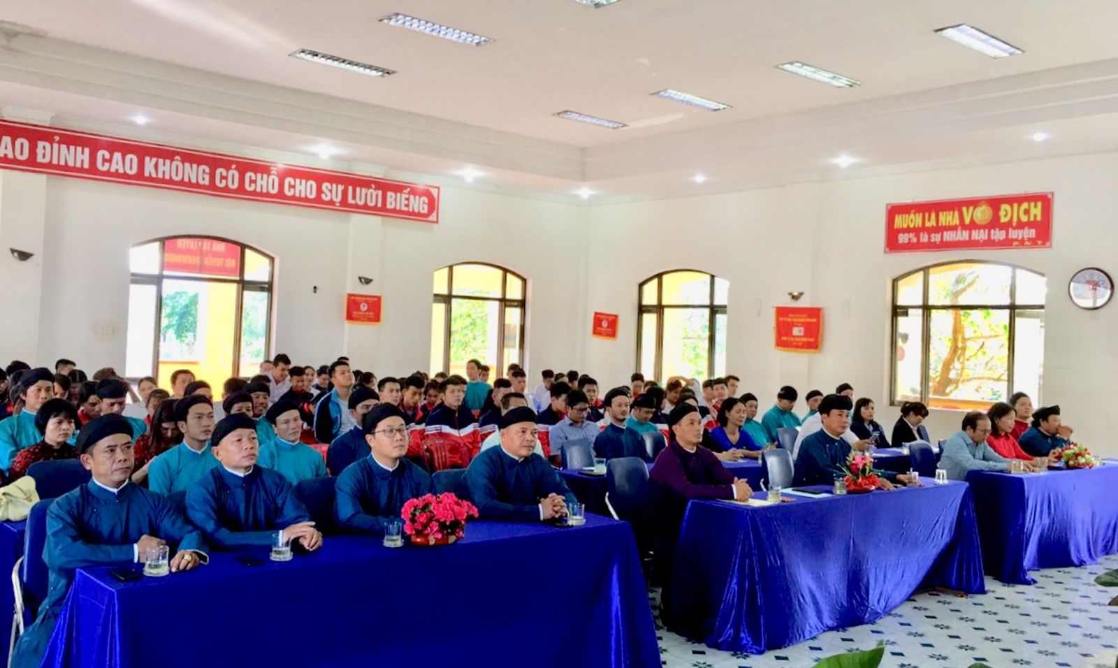 HNN.VN - Chiều 19/11, Trường trung cấp TDTT tỉnh khai giảng năm học mới 2020 - 2021. Lãnh đạo Sở Văn hoá & Thể thao, Ban giám hiệu nhà trường và toàn thể giáo viên, HLV tham dự đều mặc áo dài tại lễ khai giảng.