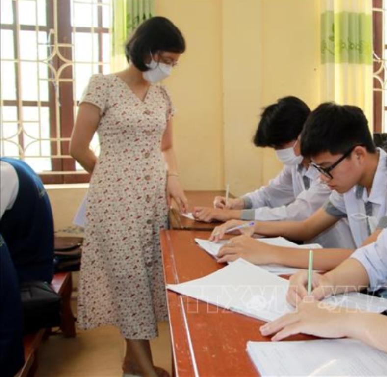 Giáo viên Trường THPT Trần Văn Lan (huyện Mỹ Lộc, tỉnh Nam Định) hướng dẫn học sinh lớp 12 ôn tập chuẩn bị bước vào Kỳ thi tốt nghiệp THPT năm 2022. Ảnh tư liệu: Văn Đạt/TTXVN