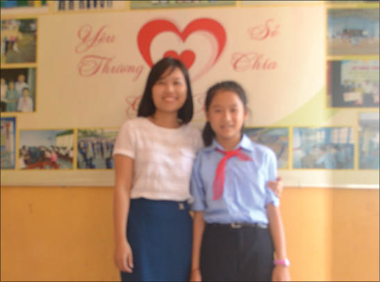 | Cô Tổng phụ trách Đội Lê Thị Phê và em Phạm Khánh Linh |