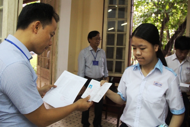 Học sinh thi tuyển vào Trường THPT Quốc Học. Ảnh: P. Thành