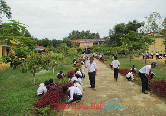 Học trò Dương Hòa dọn sân vườn đón năm học mới