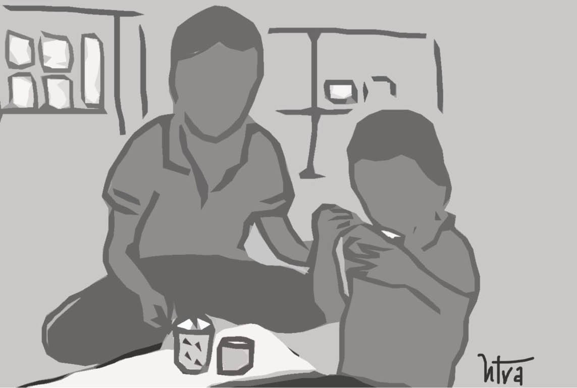 Làm sao con khóc? Nụ đứng cạnh sau đứa con trai mới lên 9 tuổi đang ngồi thu mình trên một chiếc ghế - góc học tập của bé, trên bàn học, trước mặt là một chén cơm cẩm chan xì dầu còn nguyên vẹn. Cậu bé từ từ ngước nhìn mẹ, giọt lệ long lanh, thấm nhanh vào khăn khi Nụ chấm chạm. Cô nâng chén cơm, cậu bé đón lấy rồi xúc từng thìa vơi như không thể vơi được nữa. Hồng (tên cậu bé) nhai từng hạt cơm như thể mon men đi trên triền đê làng gồ ghề đất đá. Con phải ăn hết chén cơm này mới uống được thuốc mới mau khỏi bệnh mà còn đến trường với các bạn và thầy cô, nhất là để gặp bạn Trăng Tròn (tên đi học là Viên Nguyệt) tặng bao lì xì hổ con và ôtô lego tự tay con làm nữa chứ...!