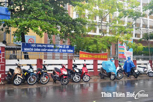 16 giờ 20 phút, cổng chính Trường tiểu học Lê Lợi ở đường Nguyễn Tri Phương bắt đầu tấp nập phụ huynh đến đón con sau giờ tan học. Phía đường Hoàng Hoa Thám, Trần Cao Vân cũng có nhiều phụ huynh đỗ xe chờ sẵn để đón con. Các loại phương tiện, kể cả ô tô và xe máy đều đỗ trật tự, theo hàng, xe máy đều quay đầu ra phía đường để khi đón con có thể chạy liền và đỡ mất công quay đầu xe, gây lộn xộn ách tắc giao thông. Phương tiện ô tô được các anh dân phòng hướng dẫn đỗ gần Bưu điện tỉnh và tránh xa các cột đèn đỏ để các phương tiện khác lưu thông hoặc dừng chờ đèn đỏ thuận tiện, không xảy ra tình trạng lộn xộn, phụ huynh dừng đỗ xe lấn chiếm lòng lề đường.