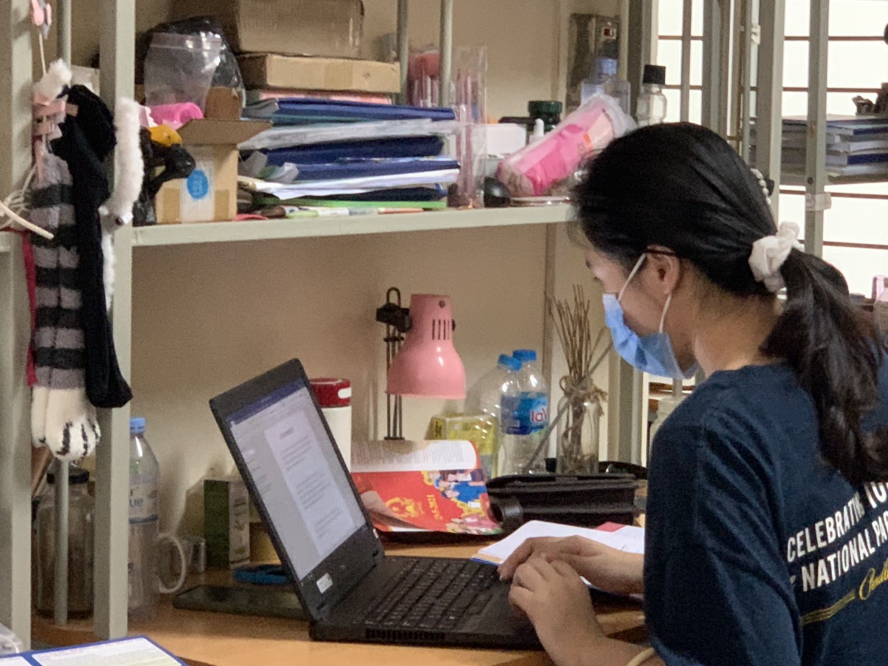 Sinh viên bị kẹt lại ở ký túc xá (Hà Nội) cố gắng hoàn thành năm học trong điều kiện học online. Ảnh: Lê Vân