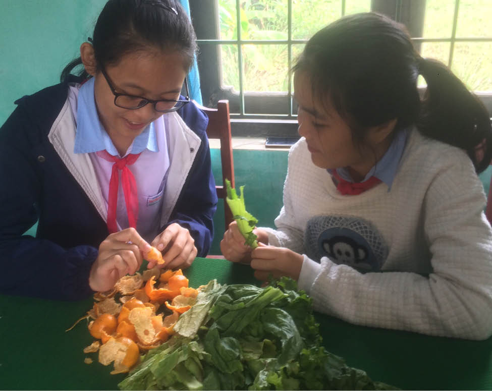 Với rác hữu cơ, Khuyên và Linh Đan có thể ủ nước tẩy rửa sinh học đa dụng